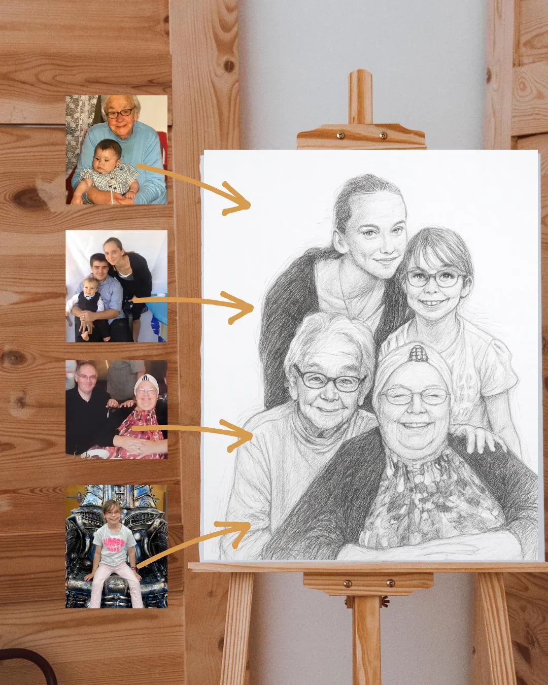 My mum passed away before I got married and had a family, I knew I'd never get any kind of picture with her again so I decided to make one myself. I started with a number of family members and they all loved theirs so I decided to make something out of it for people like me